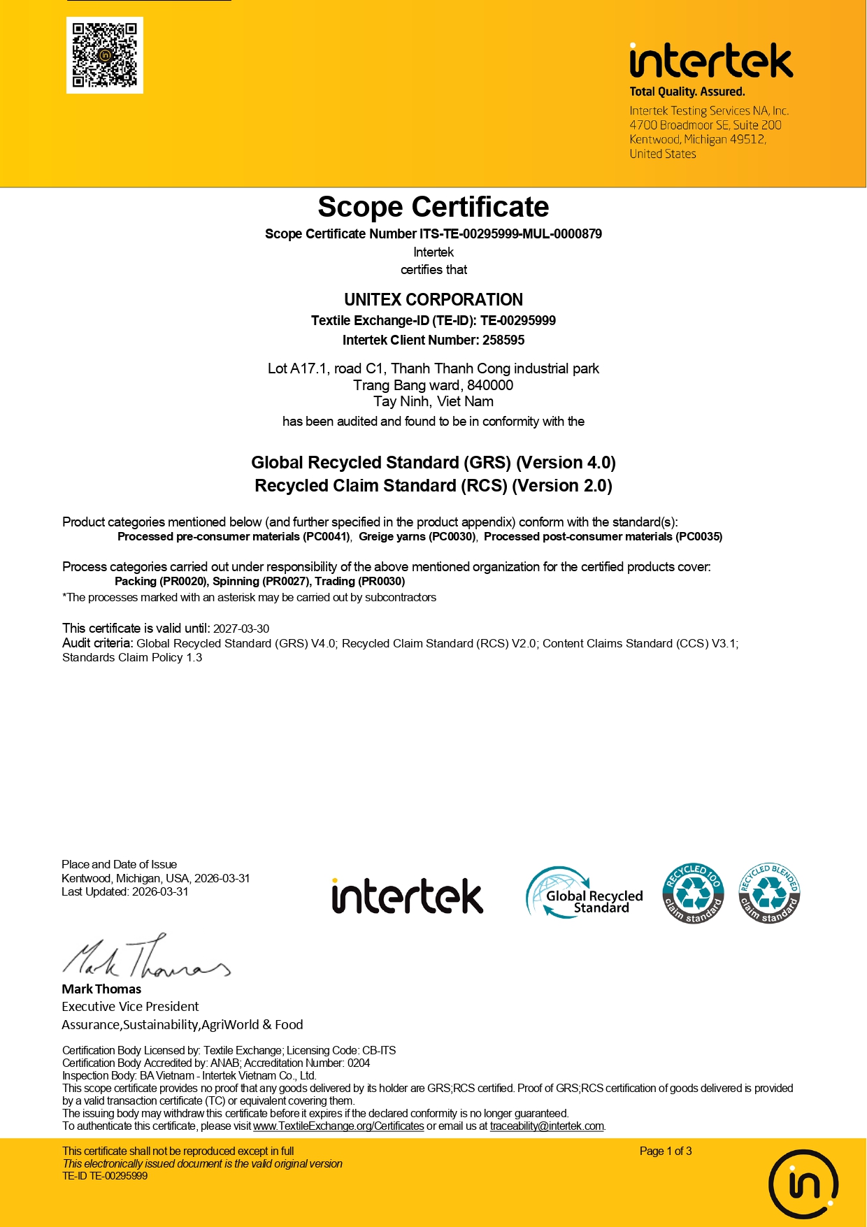 GLOBAL RECYCLE STANDARD V4.0 (GRS) is a product standard for tracking and verifying the content of recycle materials in a final product, while ensuring strict production requirements.