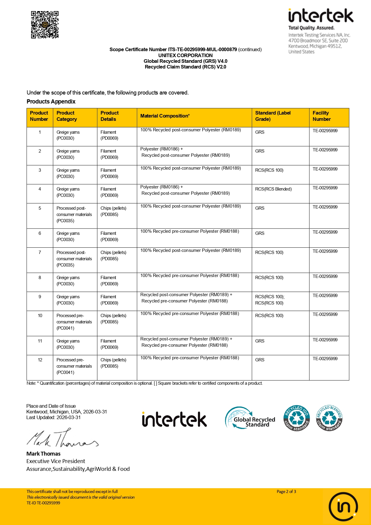 All of the Company’s products DTY, POY, FDY have to comply with strict requirements of hazardous chemicals of REACH 168 regulation EC 1907/2006 issued by European Chemical Agency.